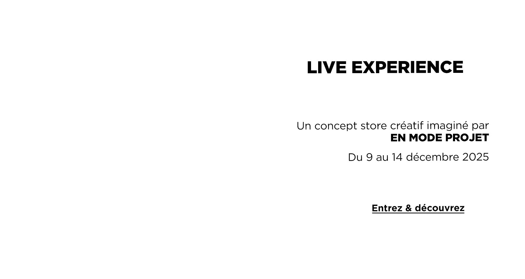 Un écrin qui se niche, là où les curieux aventureux dénichent le beau et l’émotion. Une identité ancrée et complice d’une architecture Modulable à l’infini qui toutes les 3 semaines s’adaptera, mettra en scène et en lumière une nouvelle marque. De la mode, de la déco, du lifestyle, des loisirs, du goût gourmand, de la beauté... : un tempo surprenant au fil du temps, une programmation en adéquation avec le lieu et les saisons.