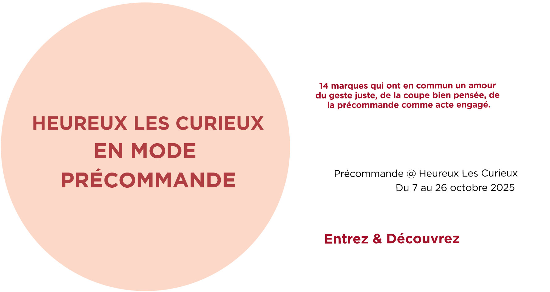 HEUREUX LES CURIEUX est un concept innovant de commerce qui offre aux marques et aux consommateurs un tête à tête inédit. L’expérience est la clé, elle réveille les sens et redonne du sens à la consommation. De la confiance et de la conscience. Plus qu’un énième pop-up, HEUREUX LES CURIEUX est un lieu durable. On y est, on y reste : 23, rue du Pont-aux-Choux à Paris. Notre adresse, la première. Celle d’un Ephémère pérenne.